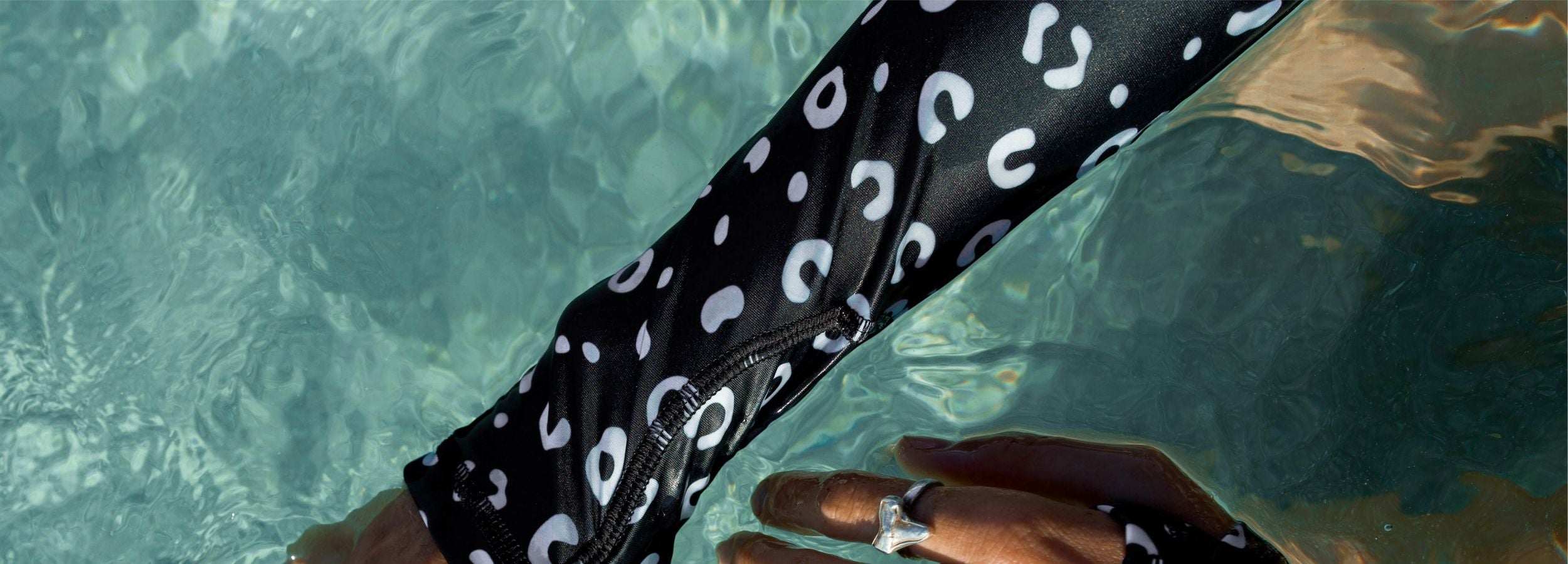 And lastly, an added benefit for me is that because I have a skin condition called polymorphic light eruption (PLE) which only affects me when exposed to large concentrated doses of the Caribbean sun (one of my very favorite things in the world!), the sexy and versatile protection offered by the Long Sleeve Rashie and Leggings is now a Swimwear staple for me on vacation whether I’m sipping cocktails poolside or making eye contact with whale sharks off the coast of Mexico!