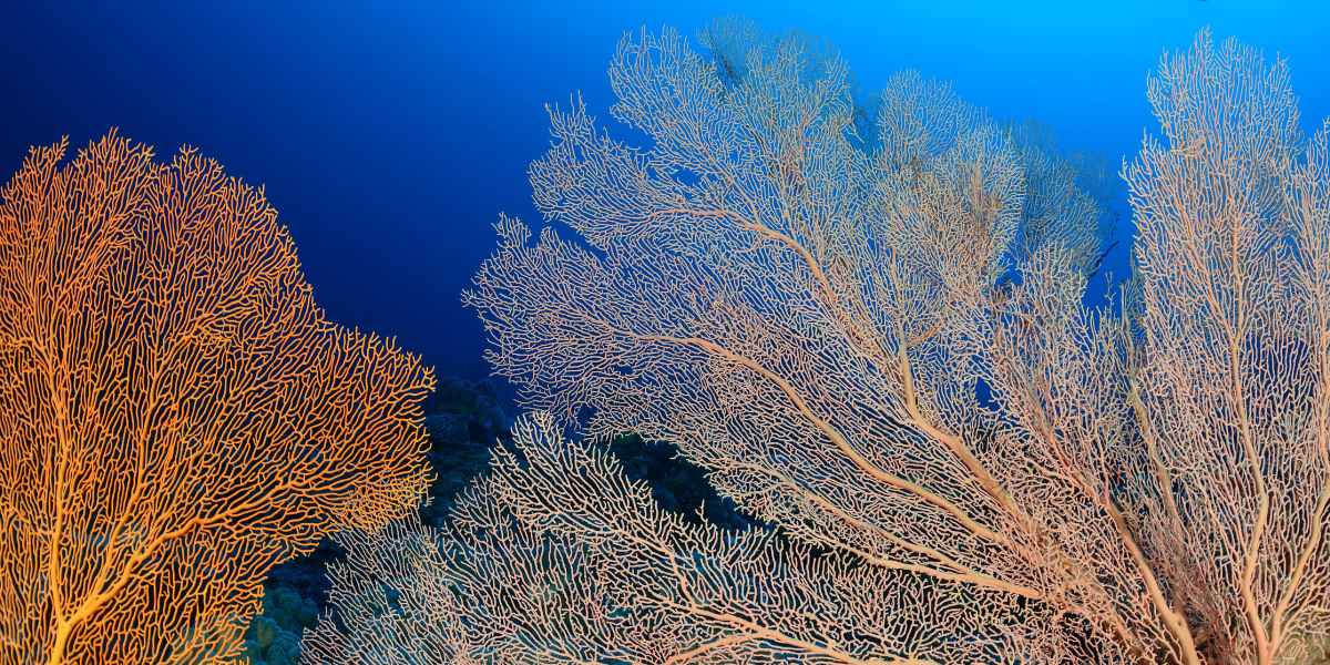 Inspired by the breathtaking beauty of an underwater coral reef, our design highlights the vibrant color + intricate latticework that make up a gorgonian sea fan. Although this branch structure may look like a plant, it’s actually an animal.
